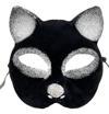 Siyah Renk Gümüş Simli Süet Kaplama Kedi Maskesi 18x14 Cm