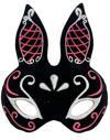 Bu siyah süet kaplama tavşan maskesi, kırmızı ve beyaz simlerle süslenmiş göz alıcı bir tasarıma sahiptir. 18x16 cm boyutlarındadır ve çoğu yetişkine uygundur.