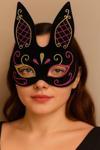 Gizemli ve göz alıcı bir görünüm için siyah süet ve kırmızı gold simli tavşan maskemiz tam size göre!