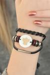 Tahtakale Toptancı Siyah Renk Melekli Tasarım Çoklu Deri Bayan Bileklik