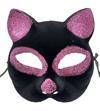 Balolar ve özel günler için mükemmel bir aksesuar olan Siyah Renk Pembe Simli Süet Kedi Maskesi ile göz kamaştırın