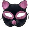 Balolar ve özel günler için mükemmel bir aksesuar olan Siyah Renk Pembe Simli Süet Kedi Maskesi ile göz kamaştırın!