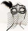 Siyah Renk Siyah Puantiyeli Duvaklı İncili Parti Maskesi