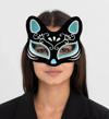 Siyah Renk Üzeri Gümüş Mavi Simli Süet Kaplama Kedi Maskesi ile gizemli ve etkileyici bir görünüm oluşturun ve Kostüm Partisine hazır olun!