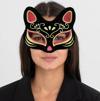 Siyah Renk Üzeri Kırmızı Sarı Simli Süet Kaplama Kedi Maskesi ile Kostüm Partisine Hazır Olun!