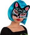 Kostüm maskelerinin en sevimli ve eğlenceli maskelerinden biri olan Siyah Renk Mavi Kırmızı Simli Süet Kaplama Kedi Maskesi ile göz kamaştırın