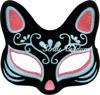 - Siyah süet kaplama ve mavi ve kırmızı simlerle süslenmiş, kedilerin sevimliliğini ve gizemini yansıtan bir maske tasarımı.
