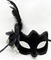Siyah Renk Yandan Tüylü Beyaz İNcili Süet Kaplama A Kalite Lüks Parti Maskesi 20X23 Cm