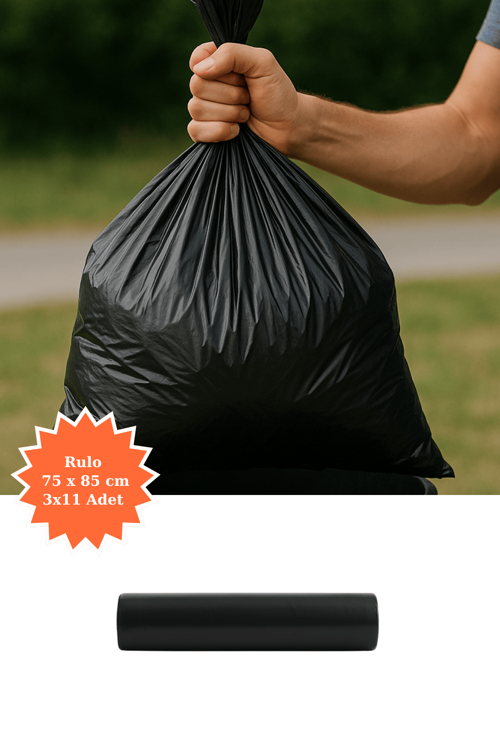 Poshetto Siyah Rulo Çöp Poşeti 75x85 cm 3x11 Adet Ev Mutfak İş Ofis Avantajlı Paket