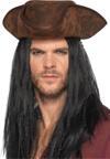 Butik Siyah Saçlı Kaptan Korsan Şapkası