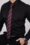 Etikmen Siyah Saten & Bordo Çizgi Desen Hediye Kutulu Gömlek Kravat Seti