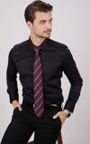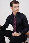 Siyah Saten & Bordo Çizgi Desen Hediye Kutulu Gömlek Kravat Seti