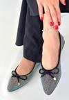 Siyah Saten İşlemeli Babet Ayakkabı