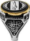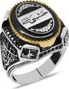 Gümüş Hediye Al Siyah Sıkma Kehribar Taşlı Hüsn-i Hat "Hasbiyallah Dört Halife İsmi"Yazılı 925 Ayar Gümüş Erkek Yüzük