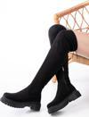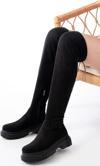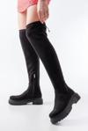 Terzi Bey Siyah Süet Fermuarlı Diz Üstü Bağcıklı Çorap Günlük Kadın Çizme