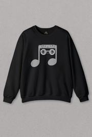 So Cool Siyah Sweatshirt Nostalji Kaset Kalem Müzik Nota Sol Anahtarı Baskılı Unisex Sweat