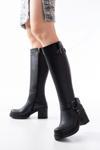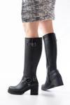 Siyah Toka Aksesuarlı Fermuarlı Günlük Kalın Topuklu Kadın Bot