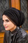 Aişe Tesettür Siyah Tül Büzgülü Dolama Bone
