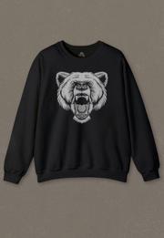 Siyah Unisex Sweatshirt Angry Bear Head Kızgın Ayı Kafa Baskılı Sweat