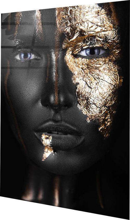 Siyah ve Altın Yüz Sanatı Cam Tablo