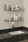 - Tam Set Kullanım: Duş rafı, sabunluk ve diş fırçalık ile eksiksiz banyo düzenleyici set.