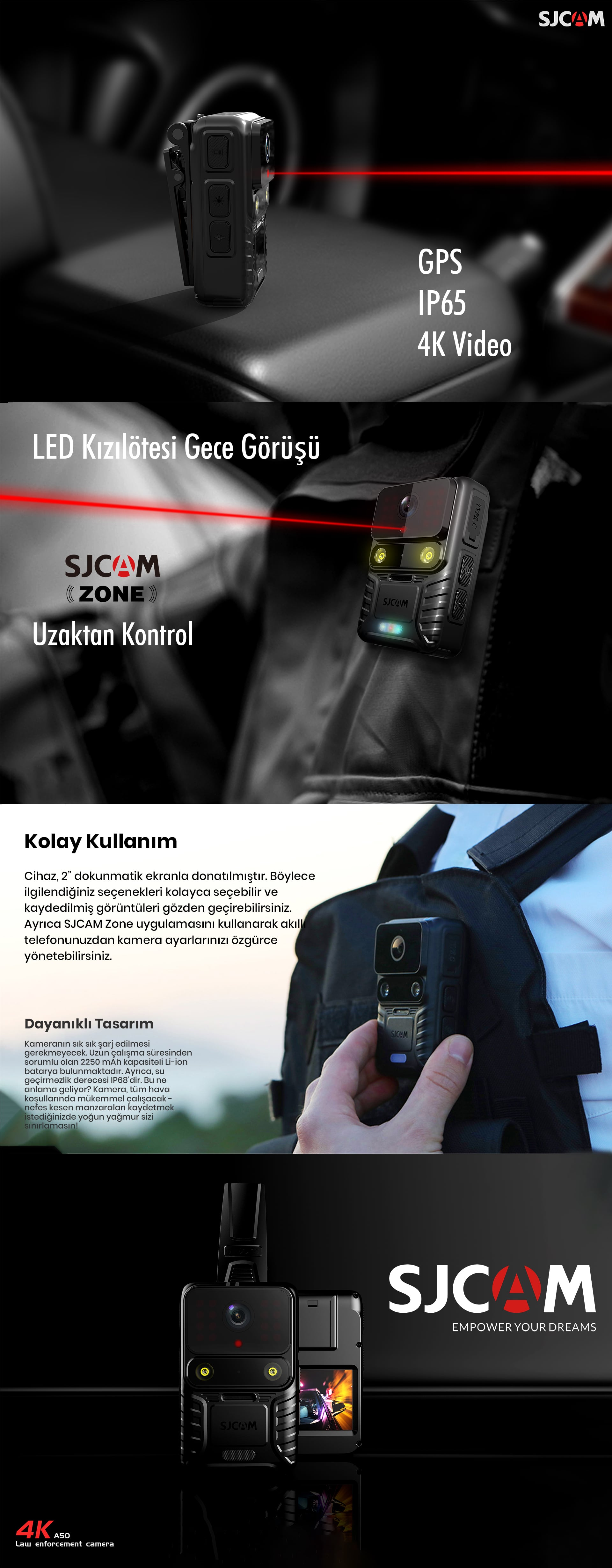 SJCAM A50 geniş kullanım alanıyla diğer kameralardan ayrılmaktadır. Polis memurları, itfaiye, güvenlik görevlisi vb. görev dallarında caydırıcı ve olay anını ultra hd kaydetmenize olanak sağlayarak delil niteliğindeki verileri sizin için saklar. Bisikletçilik, ilk olay anı, araç kamerası olarak, polis görevlerinde ve diğer alanlarda rahatlıkla kullanılabilir.