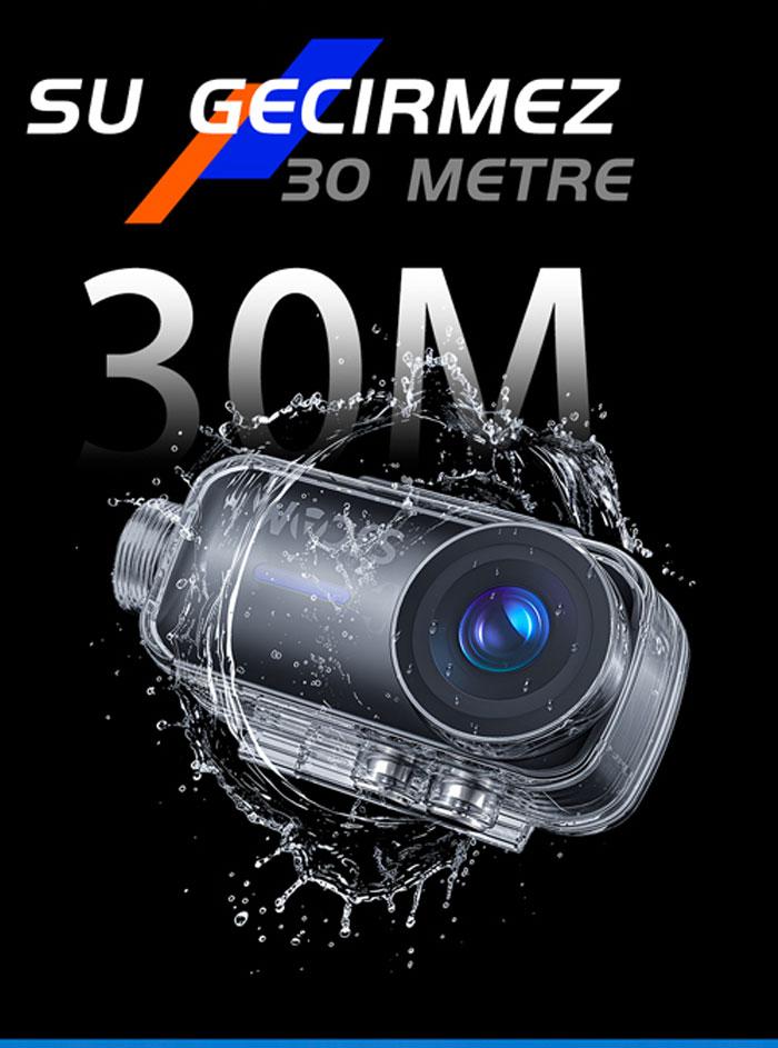1100 mAh lityum-iyon pili sayesinde 1080P 30 fps video kaydında 3 saat ve 45 dakikaya kadar kullanım süresi sunar. Ürünle birlikte gelen koruyucu kılıf ile 30 metreye kadar su geçirmez özelliği, su altı maceralarınızı da güvenle kaydetmenize olanak tanır.