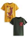 2'li paket T-shirt. Pamuklu penye kumaş. Haki ve hardal. Kısa kol, bisiklet yaka. Üzeri sevimli kaplan baskılı. Tüm Denokids ürünleri Avrupa standartlarında "Çocuk Güvenliği Kuralları" gözetilerek üretilmiştir. İğne dedektörlerinden geçirilmiştir.