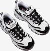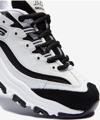 Ayak parmağında ve yanlarda yumuşak süet katman panelleri ve yüksek kontrastlı görünüm için ince parlak kaplamalı dokuma örgü kumaş panelleri vardır.