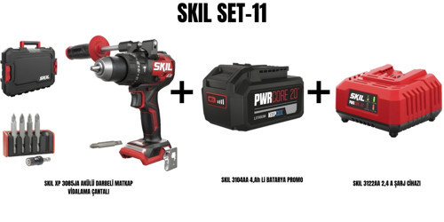 Skil SKIL Set-11 (SKIL XP 3085JA AKÜLÜ DARBELİ MATKAP VİDALAMA ÇANTALI+SKIL 3104AA 4,Ah Li BATARYA PROMO+SKIL 3122AA 2,4 A ŞARJ CİHAZI)