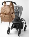 - Minderli alt değiştirme pedi ve bebek arabası askıları.