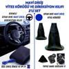 Skoda Fabia Uyumlu Siyah Deri Mavi Dikiş Direksiyon Kılıfı ve Vites Körüğü 2'li Set.