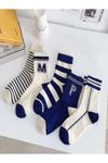 Unisex tasarımı ile herkesin rahatlıkla kullanabileceği mavi çizgili desenli soket çoraplar, günlük kullanım için idealdir