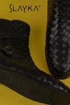 El işçiliğiyle özenle tasarlanmış hasır detayları ve hakiki deri yapısıyla dikkat çekiyor. Hem dış hem iç yüzeyi hakiki deri kaplama olan bu bot, estetik görünümüyle fark yaratıyor.