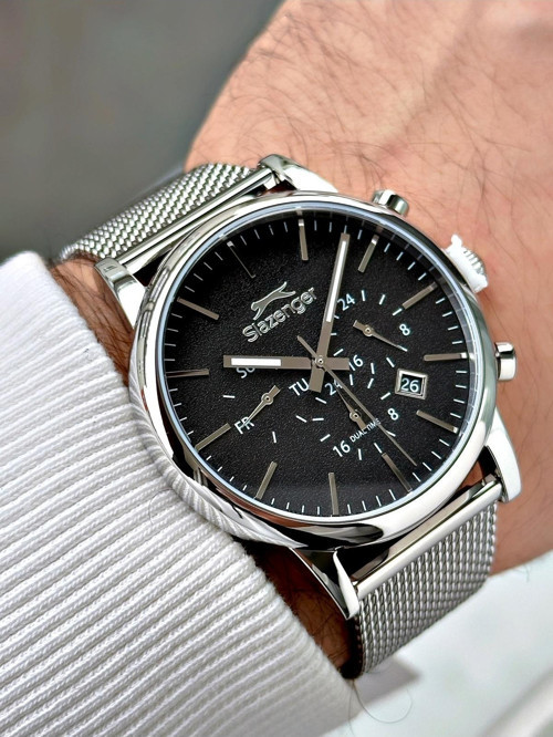 Slazenger Fonksiyonlu Gümüş-Siyah Renk Çelik Hasır Kordon Erkek Kol Saati 1714.11