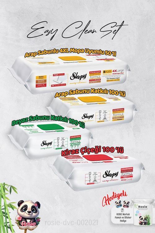 Sleepy Arap Sabun, Kiraz, Beyaz Sabun ve 4 XL 50'li Arap Sabunlu Mop Yüzey Temizlik Havlusu Hediye Rosie
