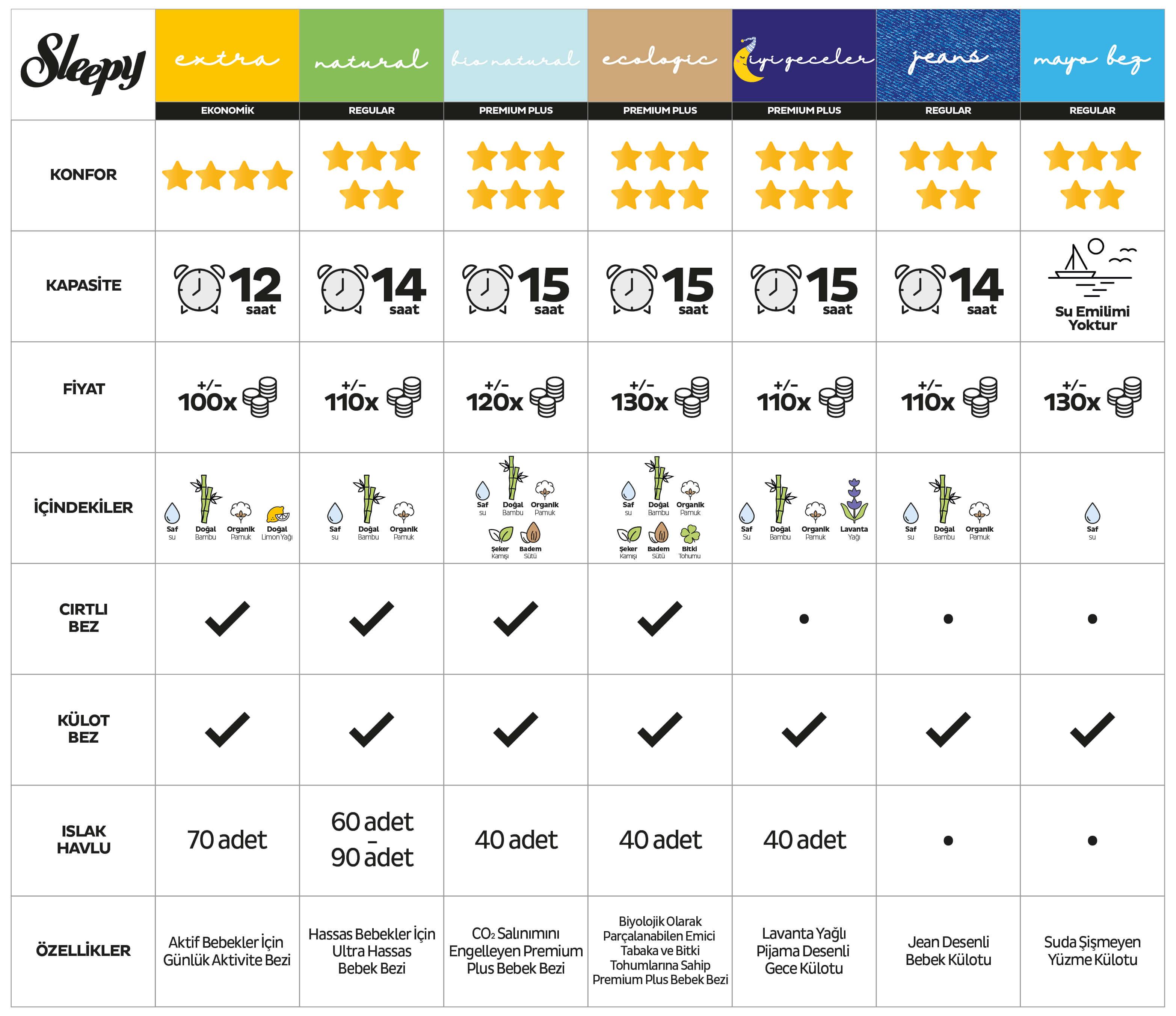 Sleepy’nin ürünü içerisinde kimyasallar bulunmamaktadır. Ürün tamamen organiktir ve kullanılan malzemelerin doğadaki en saf halleriyle üretilmiştir. Renklendirici de içermeyen üründe doğal pamuk ve bambu özleri bulunmaktadır.