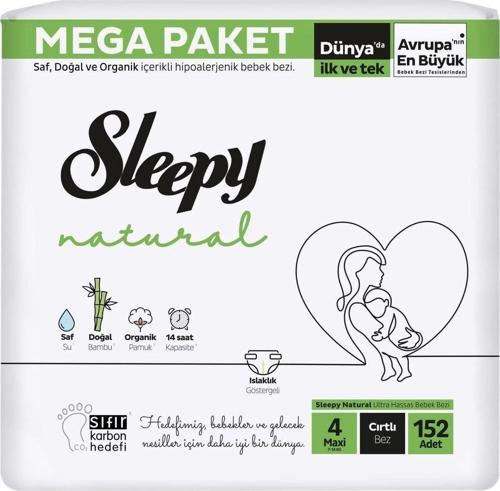 Sleepy Natural Maxi 4 Beden Numara Bebek Bezi 152 Adet Cırtlı Bez