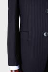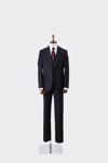 Erkek Lacivert Poliviskon Trend Yelekli Çizgili Desen Slim Fit  Sivri Yaka Takım Elbise - Image 1