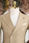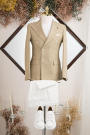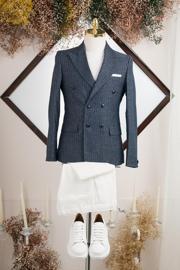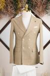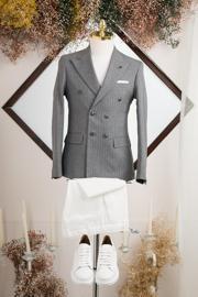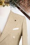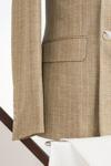 Slimfit Çift Yırtmaçlı Çizgili Sivri Yaka Astarlı Kruvaze Tek Ceket