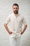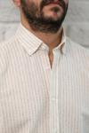 Slimfit Fit Yaka Düğmeli Çizgili Yazlık Gofre Kumaş Erkek Gömlek