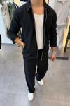 Slimfit Yakalı Astarlı Yan Cep Baggy Pantolonlu Kadife Takım
