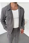 Slimfit Yakalı Astarlı Yan Cep Baggy Pantolonlu Kadife Takım