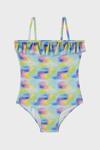 Slipstop Rihanna İnce Askılı Kolay Kuruyan Uv Korumalı Parlak Baskılı Junior Kız Çocuk Mayo SM22110220 YEŞİL-PEMBE
