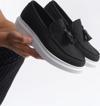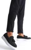 Ftt SLW154 Blaze Bağcıksız Püsküllü Keten Erkek Günlük Spor Klasik Ayakkabı KBT - Siyah
