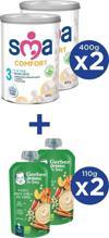 SMA COMFORT 3 1-3 yaş Devam Sütü 2x400g + GERBER ORGANIC Yulaflı, Hav., Elm., Balkab. Püresi 2x110g