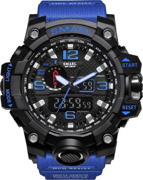 Smael Erkek Kol Saati Marka:Smael Teknoloji:Quartz Kasa Çapı:56 mm Kasa Kalınlığı:18 mm Kasa Şekli:Yuvarlak Cam Özellik:Mineral Kadran Tipi:Analog-Digital Kayış Tipi:Silikon Su Geçirmezlik:5 ATM Kronometre:Var Takvim:Var Alarm:Var