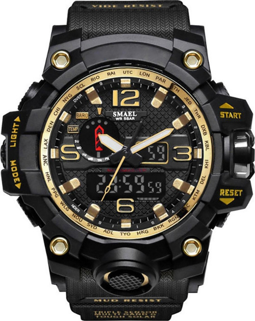 Smael Erkek Kol Saati Analog Dijital Spor Siyah Moda Trend Saat Sarı 1545 Mavi kasa siyah mavi yaldız ışık