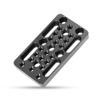 standart aralıkta (merkezden merkeze 9mm) 1/4''-20 ve 3/8"-16 dişli deliklerle donatılmıştır. SmallRig ray bloklarına, kırlangıç kuyruklarına ve kısa çubuklara monte edilebilir. bir DSLR kafesinin altına takıldığında bir anahtarlama plakası.