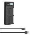 Çift pil şarj cihazı, gerçek zamanlı şarj durumunu gösteren LCD ekranı ile iki pili aynı anda şarj edebilir. USB adaptörü, araç şarj cihazı, güç bankası ile şarj edilmesini sağlayan Micro-USB ve USB-C arayüzü ile birlikte gelir. Özellikle USB-C arayüzü 9V⎓2A girişini destekler.